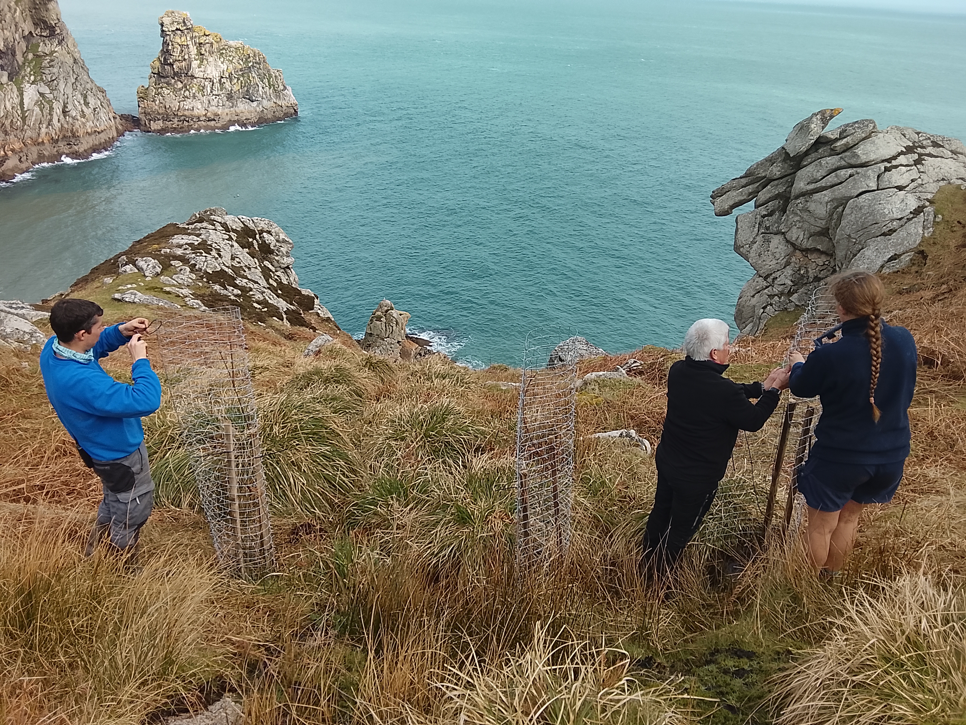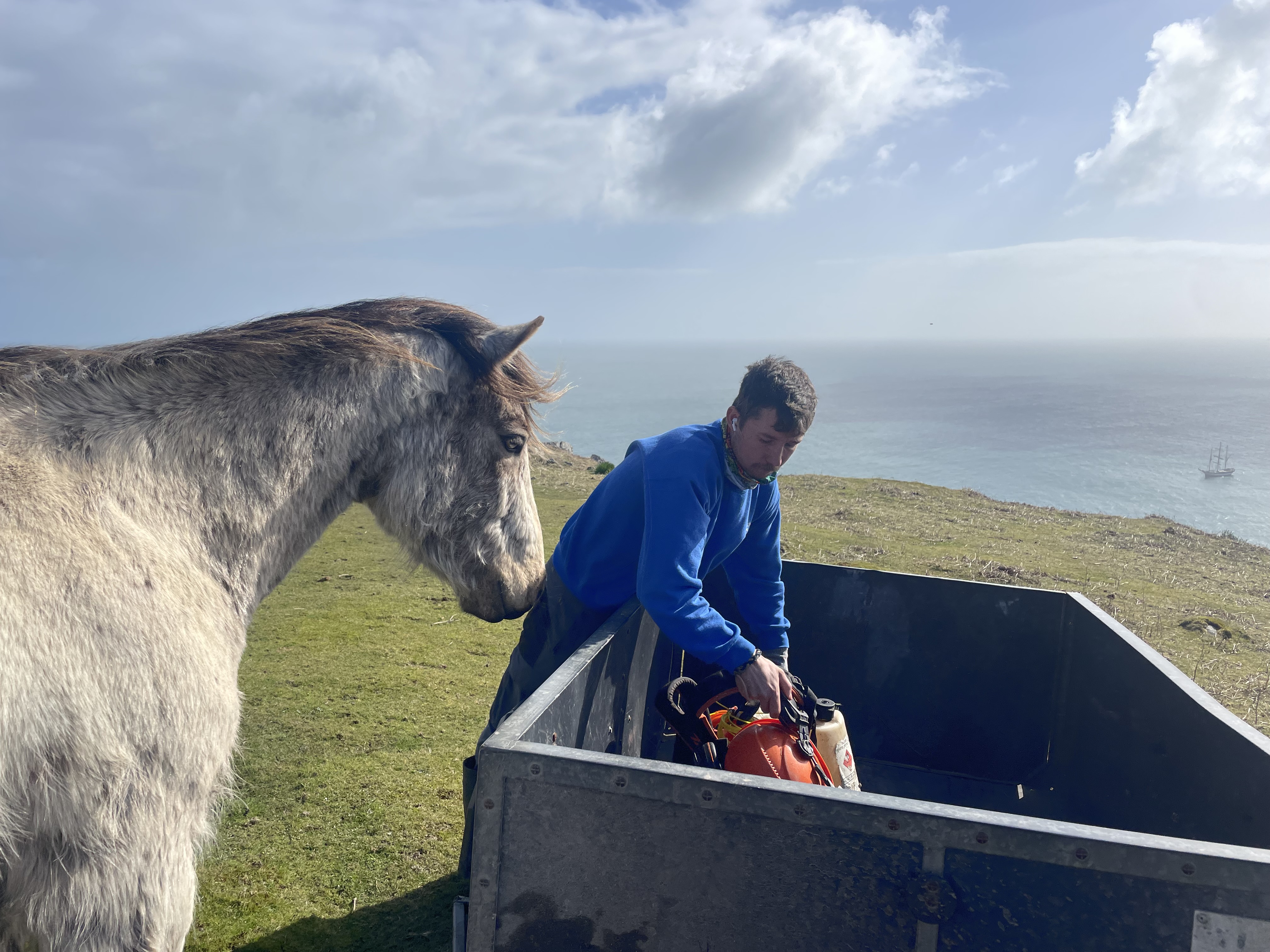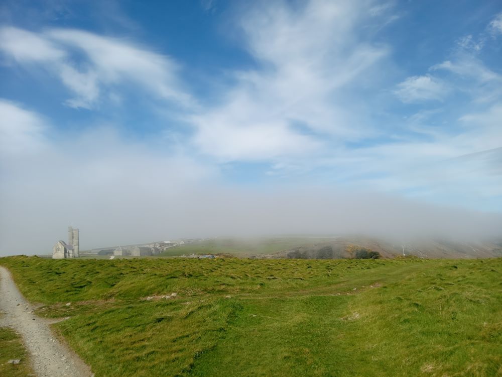 It was almost a complete 180-degree turn for today’s census with Storm Dave bringing the exact opposite of the weather conditions I had enjoyed on yesterday’s census. Instead, an F5 WSW wind was blowing across the island, and we were completely enveloped in a thick fog complete with spells of (mercifully) light rain. Usually censuses at the moment produce a total of between 35-40 species in good weather, but with viewing so difficult, I could only muster 27 species this morning, which was ten less than yesterday. However, I was able to produce a year-tick for the island when I picked up a Stock Dove in flight over Millcombe. The bird seemed quite unsettled and seemed to fly around the valley several times before disappearing somewhere, clearly it didn’t enjoy the company of its bigger cousins, the Woodpigeons, which were also hunkering down in the trees. A very small total of Warblers was sheltering in Millcombe, with Willow Warblers leading the majority and the Treecreeper was again scrambling up a tree trunk on the slopes of the valley. The Landing Bay was actually easier to view then yesterday with a single Guillemot, a couple of Razorbills and a modest number of Shags in the sheltered waters. Off Benjamin’s Chair, the Razorbills were still gathering as we fast approach the time of year where the bustling seabird colonies are most active. It was most surprising in the murk to hear a Skylark still bursting in song near the airfield, clearly it doesn’t want to put spring on hold. With the weather being so unpleasant, today presented a good opportunity to catch up with the very important job of data-entry and so for much of late morning and early afternoon I was collating the recent bird sightings onto the online data log before preparing for a kitchen porter shift in the evening.