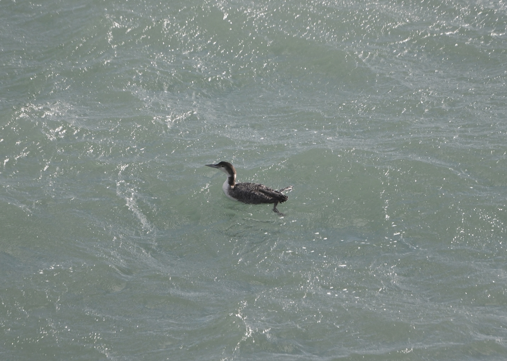 It was a glorious sunny morning for my census today with just a light NW wind on the top of the island. After a very clear night, it perhaps wasn’t surprising that the bushes weren’t filled with newly arrived birds, but it seemed like the perfect conditions to keep an eye on what was moving overhead. Sure enough, Sand Martins, House Martins and Swallows were arriving in off the sea all through the morning along with flocks of Linnets. Birders on the mainland Devon coast have been reporting large movements of the latter over the past couple of days. With the sun gleaming off the sea from the east, looking down at the Landing Bay was a bit more of challenge but after scouring the surface, the Great Northern Diver was sitting happily, having avoided the attentions of a Grey Seal the previous morning. Millcombe is currently full of Blackthorn blossom, and this is a magnet for many of the warblers pushing through with small numbers of Willow Warblers and Chiffchaffs interspersed with the occasional Blackcap this morning. The regular Treecreeper also made itself known by calling from the Pines area. When the local Sparrowhawk buzzed through, even the vocal Song Thrush dived down into the scrub, but the birds were quickly back to normal with a couple of minutes. If you are visiting the island, the Millcombe Song Thrush is a well-known individual with a particular penchant for mimicry. Just today it imitated several waders including Curlew, Greenshank, Green and Common Sandpipers. On top of that it also seemed to be enjoying doing Crossbill and perhaps most strangely, the harsh alarm-call of a Grey Squirrel. Has this bird spent some time in woodland next to an estuary? Heading to Benjamin’s Chair, Sand Martins were whizzing past me and I was surprised to see two cliff-feeding Willow Warblers in this area. Less surprising was an impressive raft of Razorbills on the sea, I could hear the birds rather deep calls drifting up the cliffs as they sat tightly-packed on the water. Over on the airfield, the Skylarks were in full song, and the Meadow Pipits were also squeaking around in various parties. The male Kestrel was also hovering in the still winds, usually I encounter this bird sat on the Quarry cottages or nearby rocks.